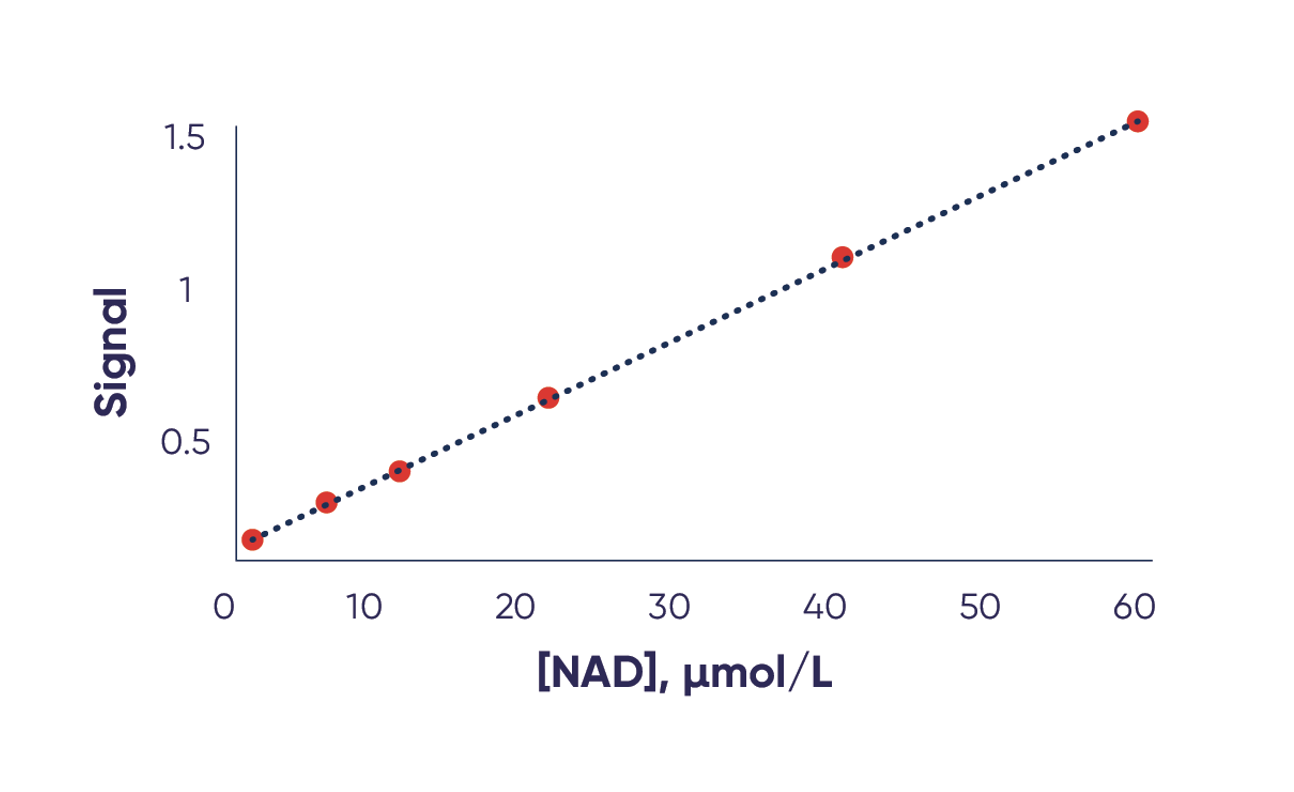 Linear Range: Our test accurately measures NAD levels in the range of 5-60 µmol/L.